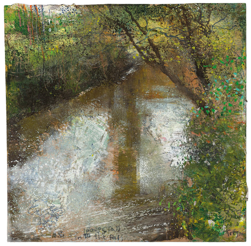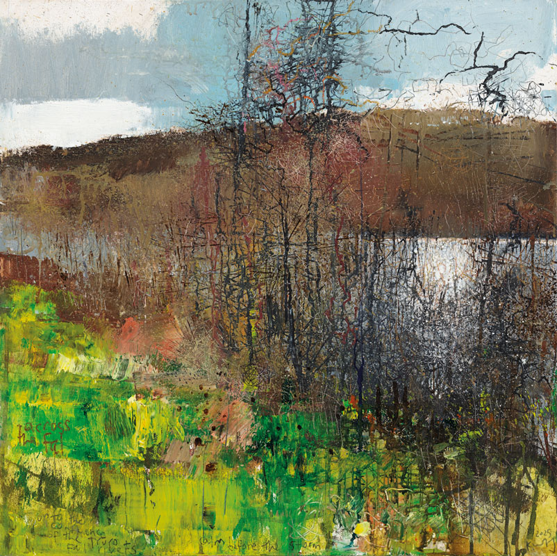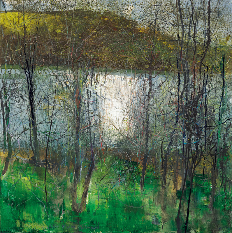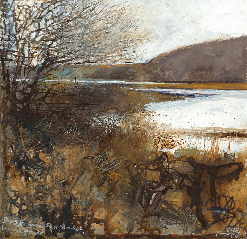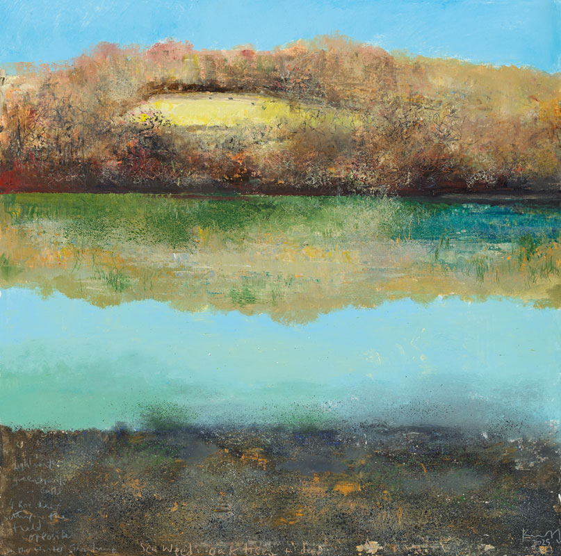 Morning oaks, winter low water. 2025. <br> <strong> mixed media on board. <br> 40 x 40cm. <br> JF2109 <br> <br> £6,500 </strong>View Larger Image