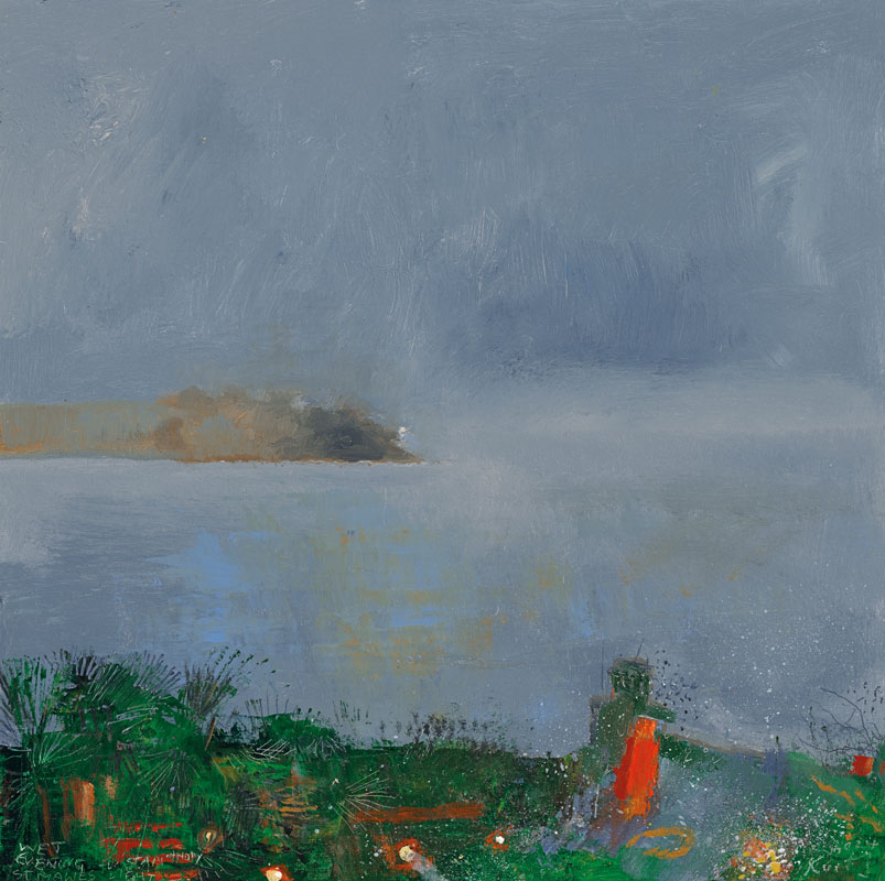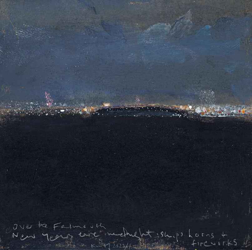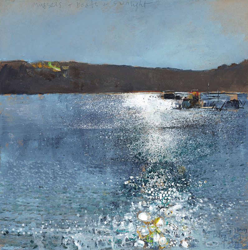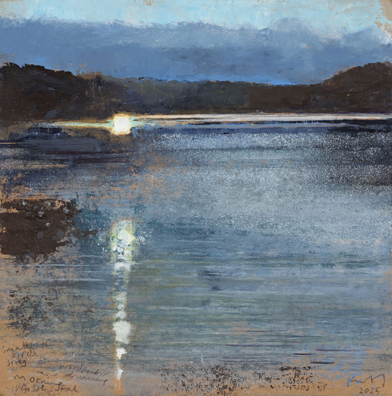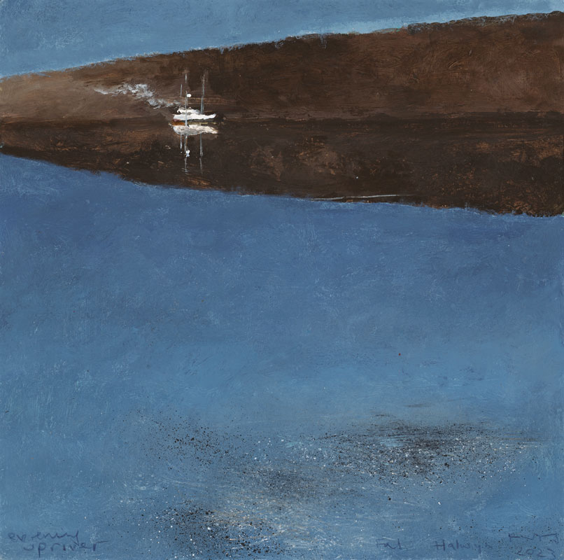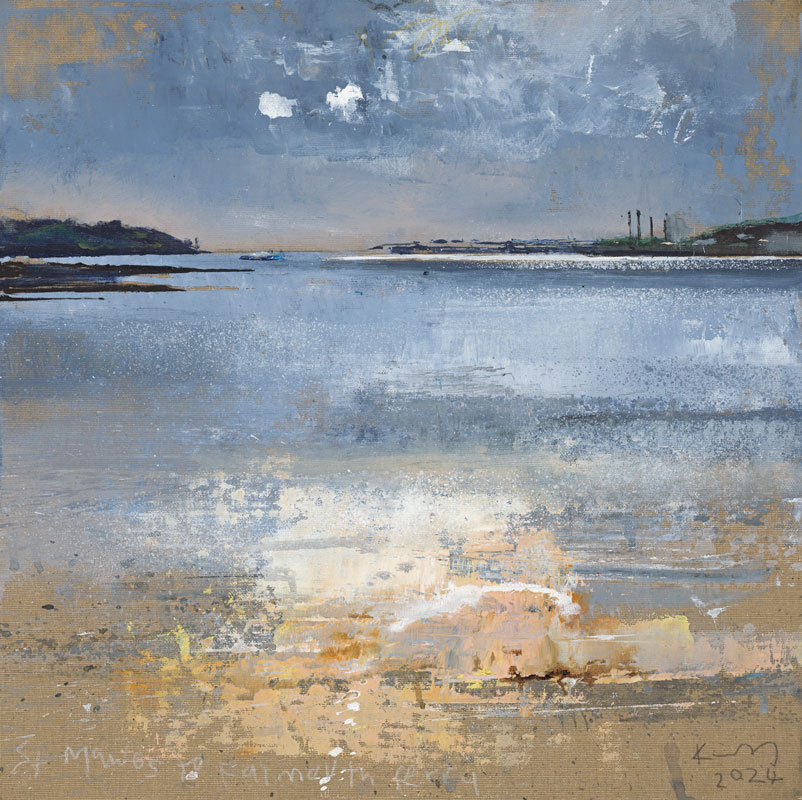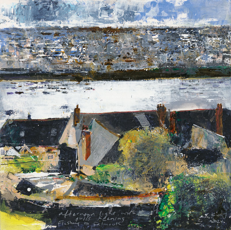 Afternoon light with gulls keening, Flushing to Falmouth. 2024. <br> <strong> mixed media on museum board. <br> 30 x 30cm. <br> JF2148 <br> <br> £5,500</strong>View Larger Image