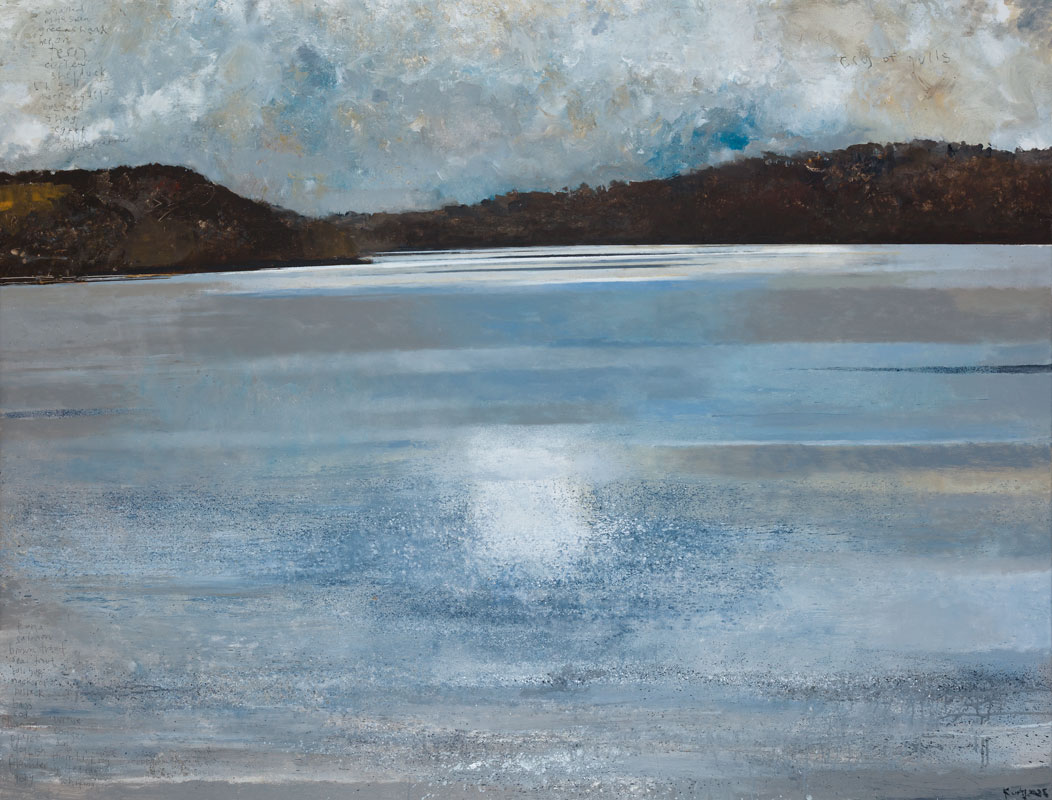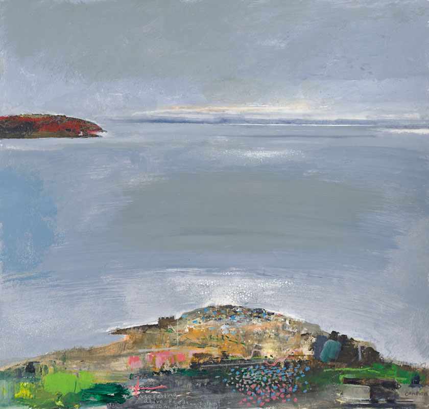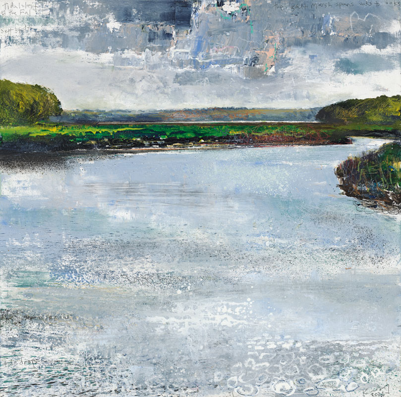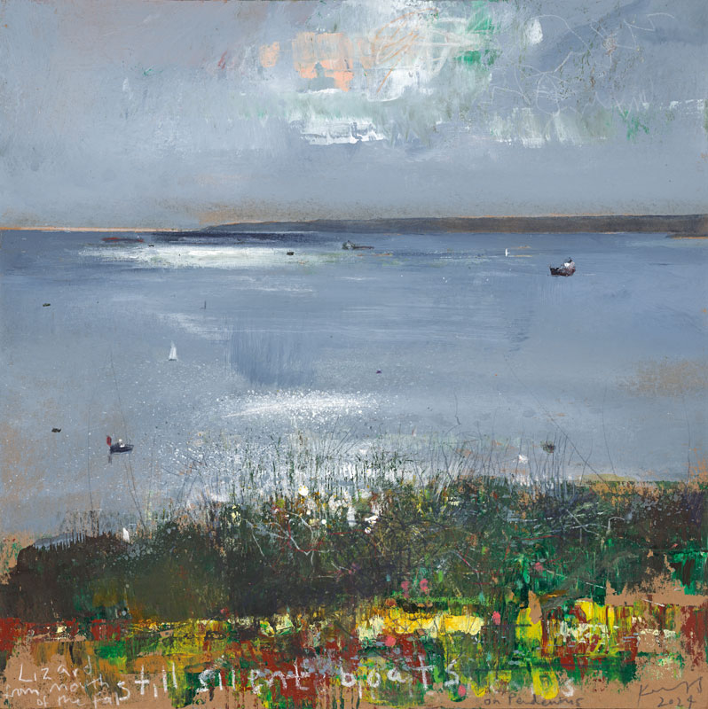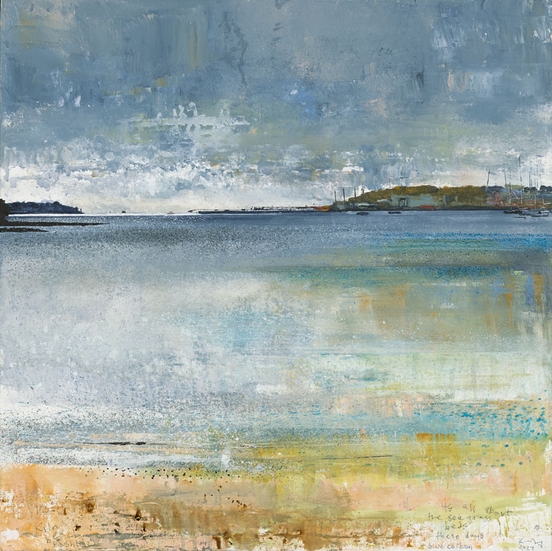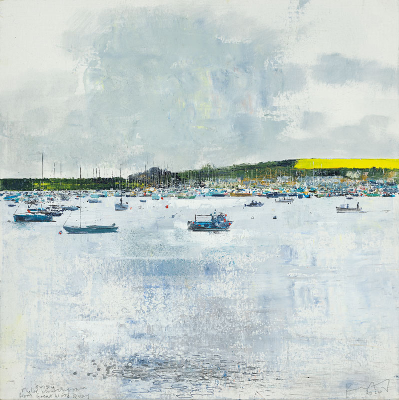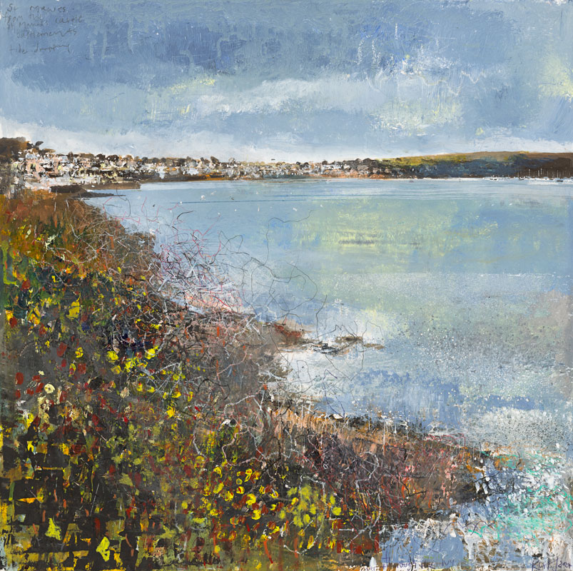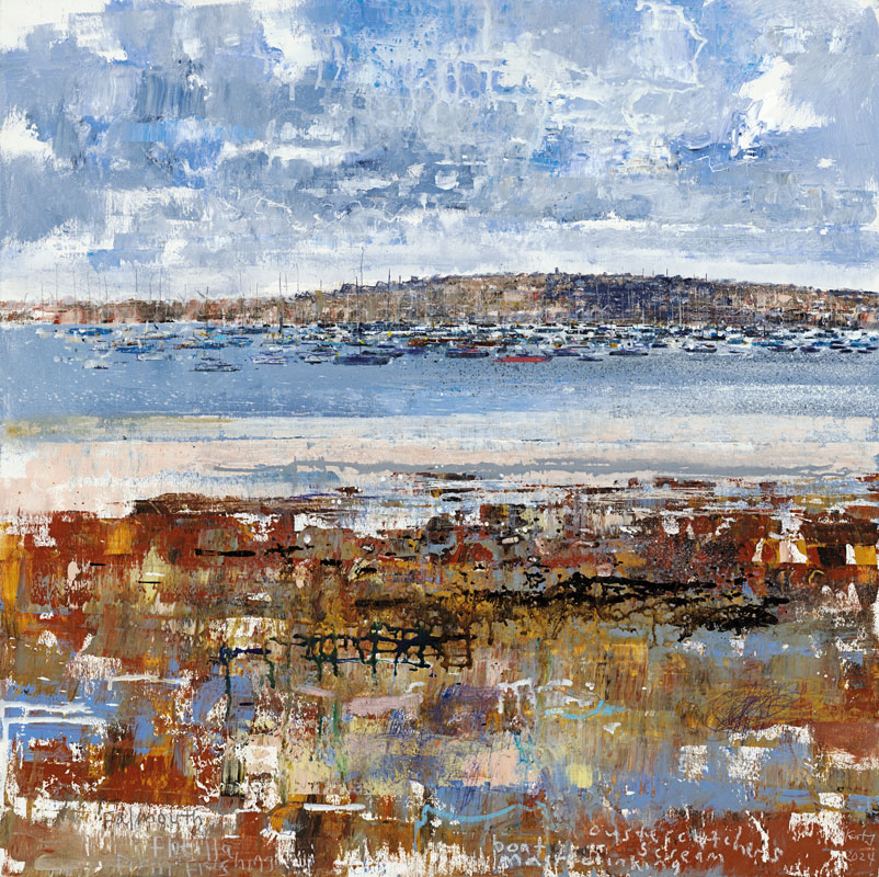 Quiet morning across Carrick Roads. 2024. <br> <strong> mixed media and sand on canvas. <br> 91.5 x 91.5cm. <br> JF2136 <br> <br> £24,000 </strong>View Larger Image