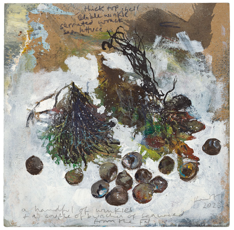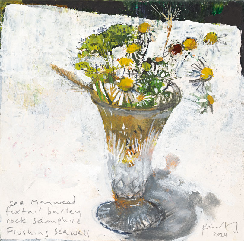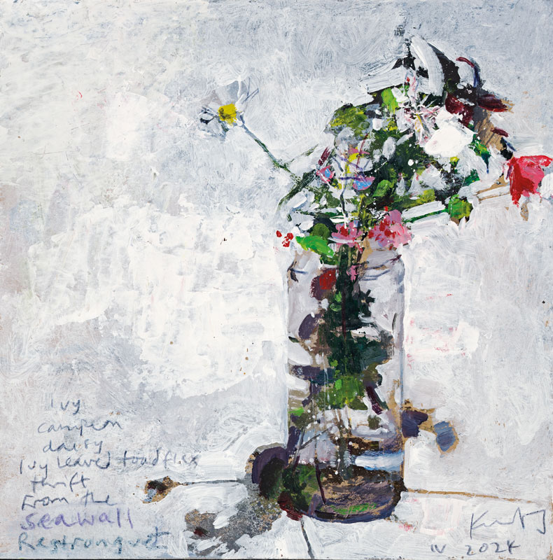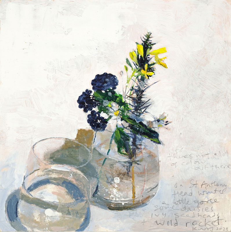 On St Anthony Head, winter. A little gorse, some daisies, ivy seed heads and wild rocket. 2023.