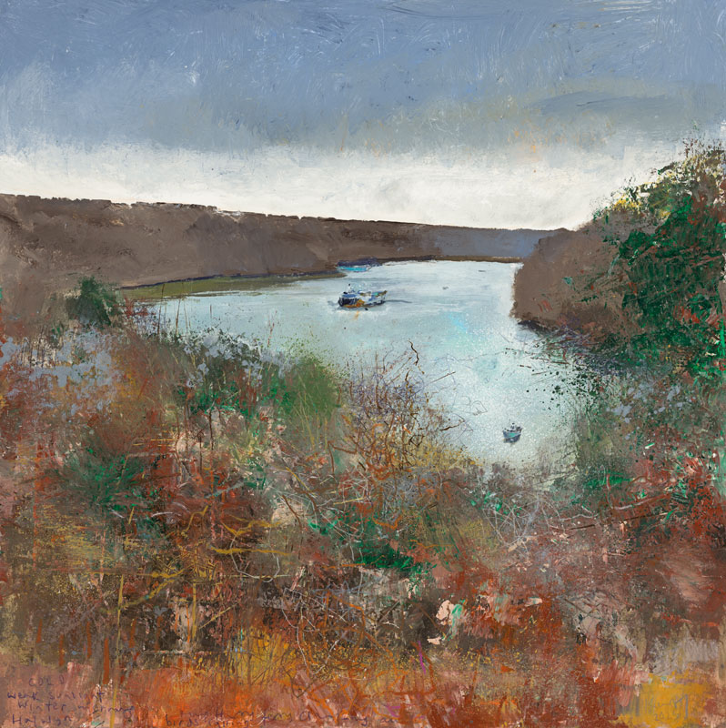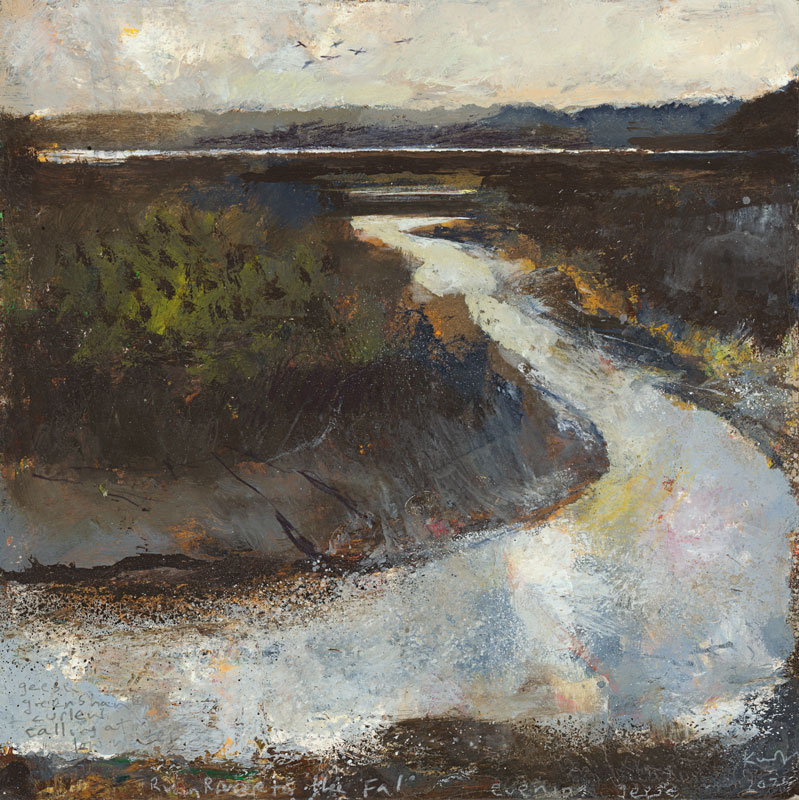 Kurt Jackson has spent the last four years or so wandering up and down the River Fal to discover for himself her various moods, states and habitats, paint brushes in hand, to make this new series of works.