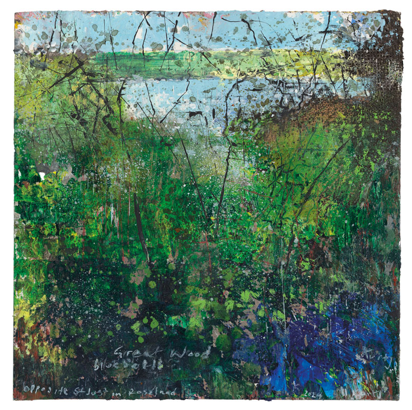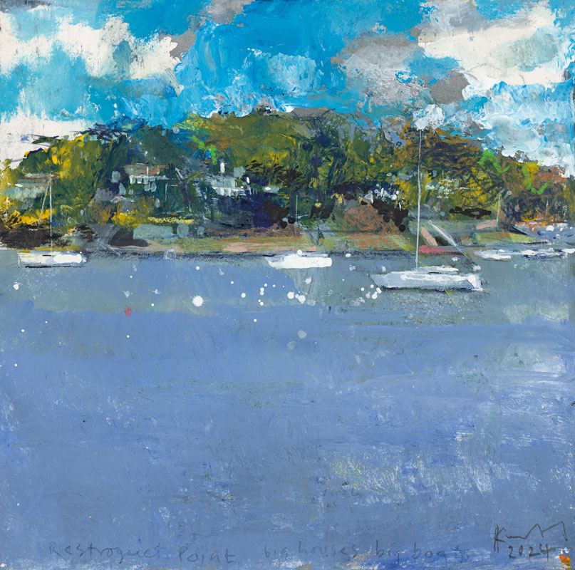 Mylor. 2024. <br> <strong>mixed media on canvas board. <br> 40 x 40cm. <br> JF2142 <br> <br> SOLD </strong>View Larger Image