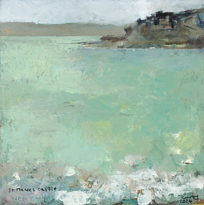 St Mawes Castle wet and windy. 2024. <br> <strong>mixed media on museum board. <br> 22 x 22cm. <br> JF2158<br> <br> SOLD</strong>View Larger Image