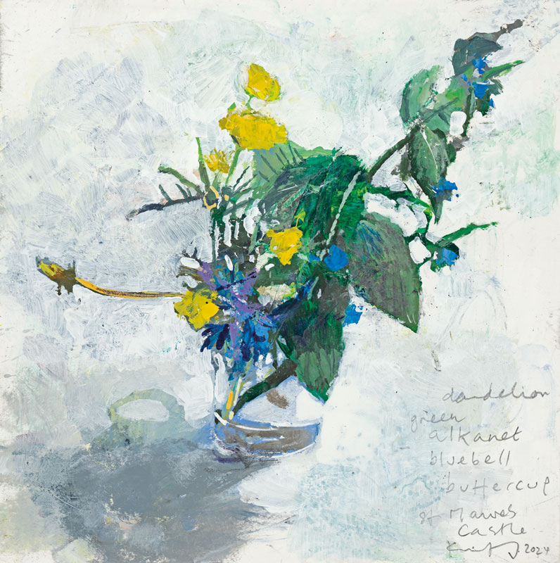 Dandelion, green alkanet, bluebell, buttercup St Mawes Castle. 2024.