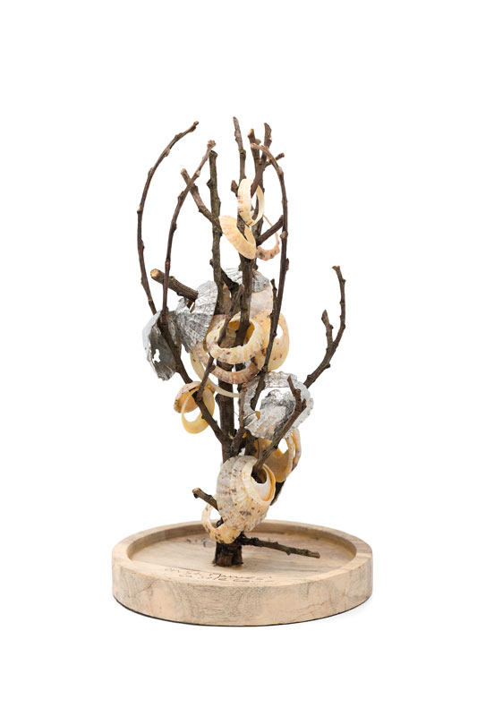 St Mawes Castle Cove limpets threaded on willow branches. 2024.