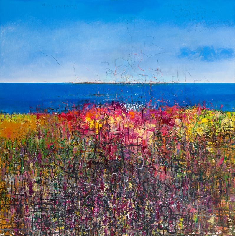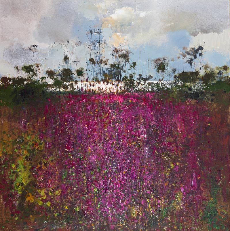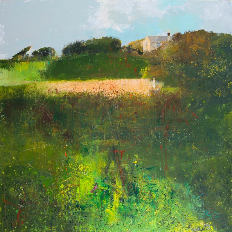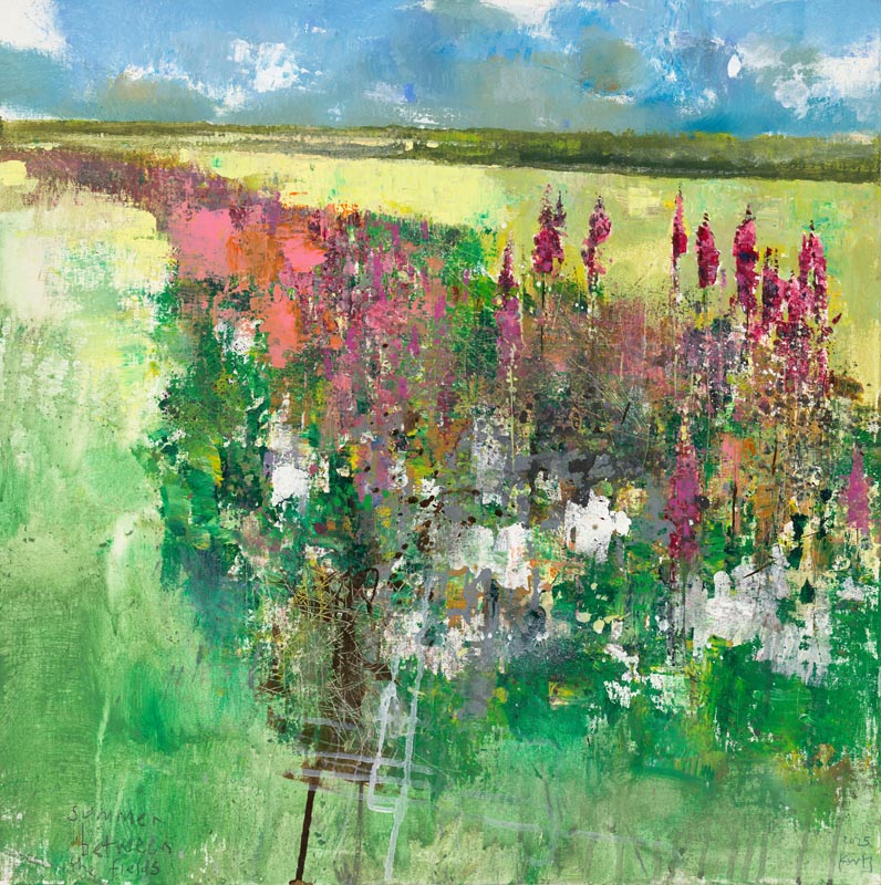 Summer between the fields. 2025. <br> <strong> mixed media on canvas board. <br> 60 x 60cm. <br> JF2275 <br> <br> £8,500 </strong>View Larger Image