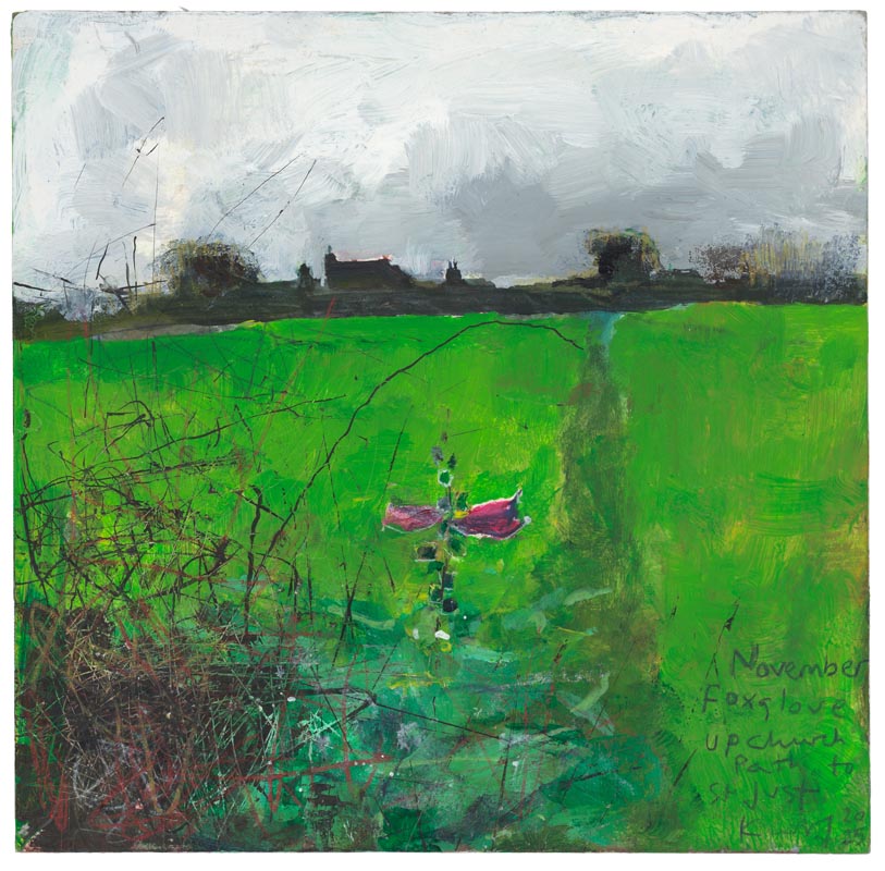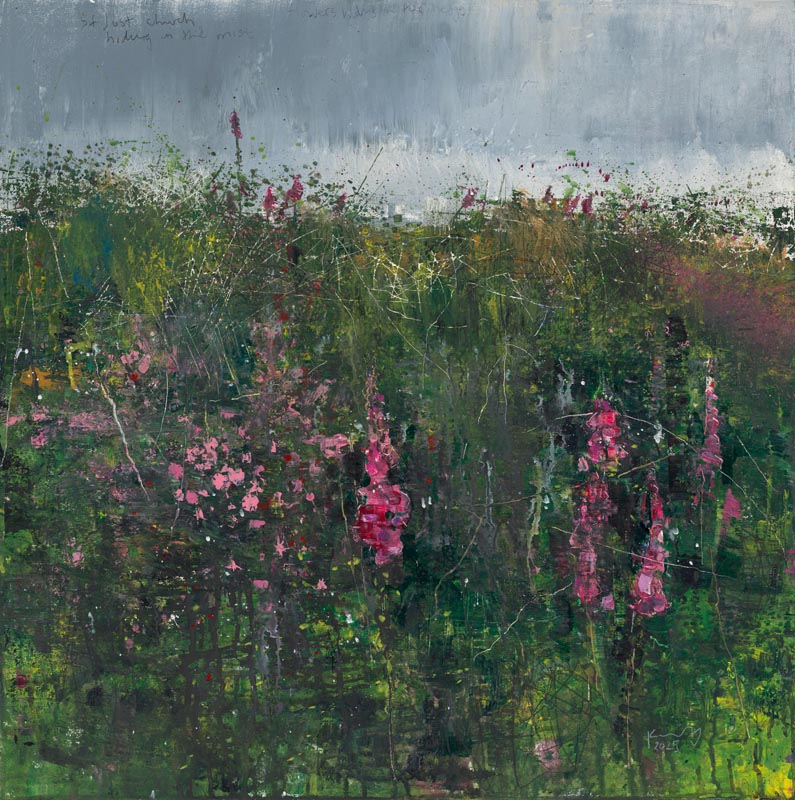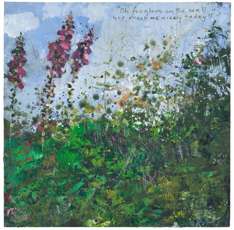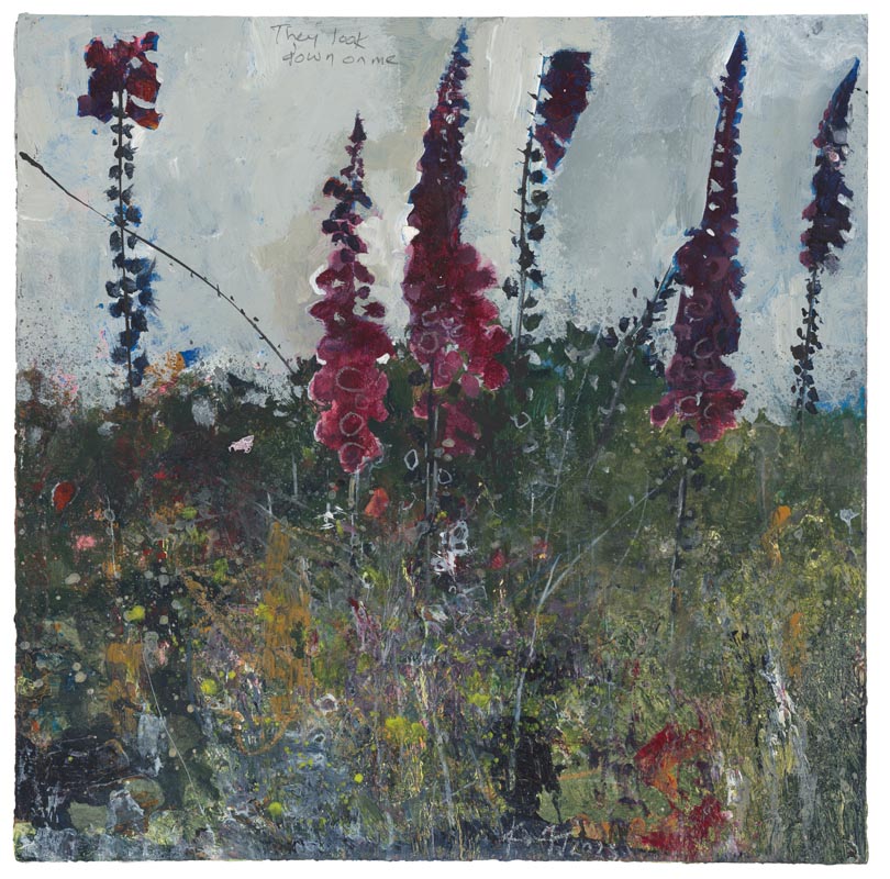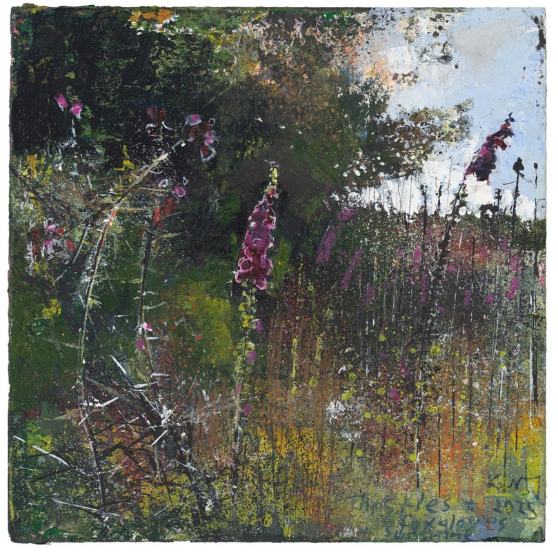 November foxglove, up the Church Path to St Just. 2025. <br> <strong> mixed media on museum board. <br> 22 x 22cm. <br> JF2227<br> <br> £3,500 </strong>View Larger Image