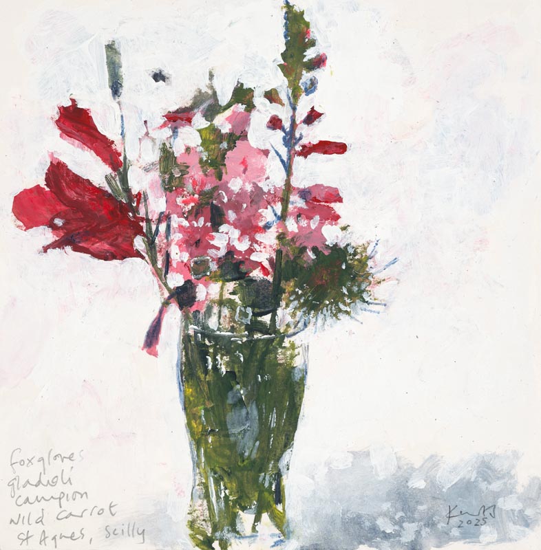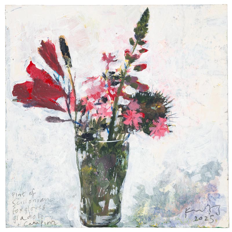 Pint of Scillonian foxgloves, gladioli and campion. 2025.