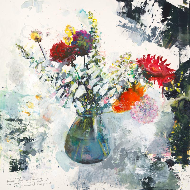 I went to the flower shop in Penzance and bought local dahlias and ornamental foxgloves. 2025.