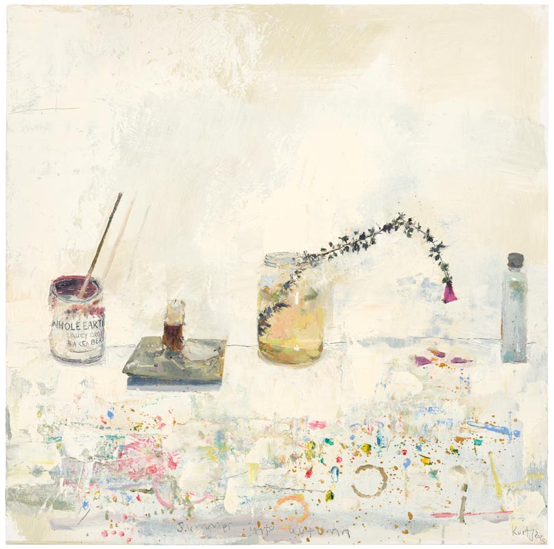 From the studio door. 2025. <br> <strong> mixed media on canvas. <br> 100 x 100cm. <br> JF2216 <br> <br> SOLD </strong>View Larger Image