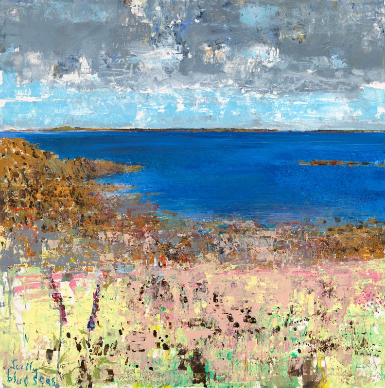 In the gorse. To Gugh. 2025. <br> <strong> mixed media on museum board. <br> 60 x 60cm. <br> JF2280 <br> <br> SOLD </strong>View Larger Image