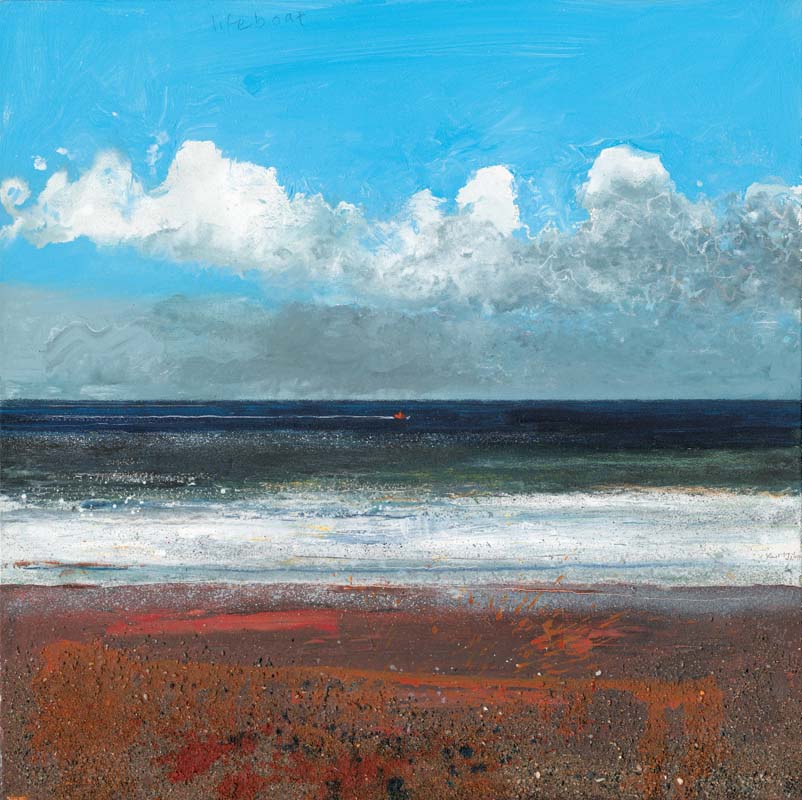 Lifeboat. 2018. <br> <strong> mixed media and sand on wood panel. <br> 60 x 60cm. <br> JF1562 <br> <br> £8,500 </strong>