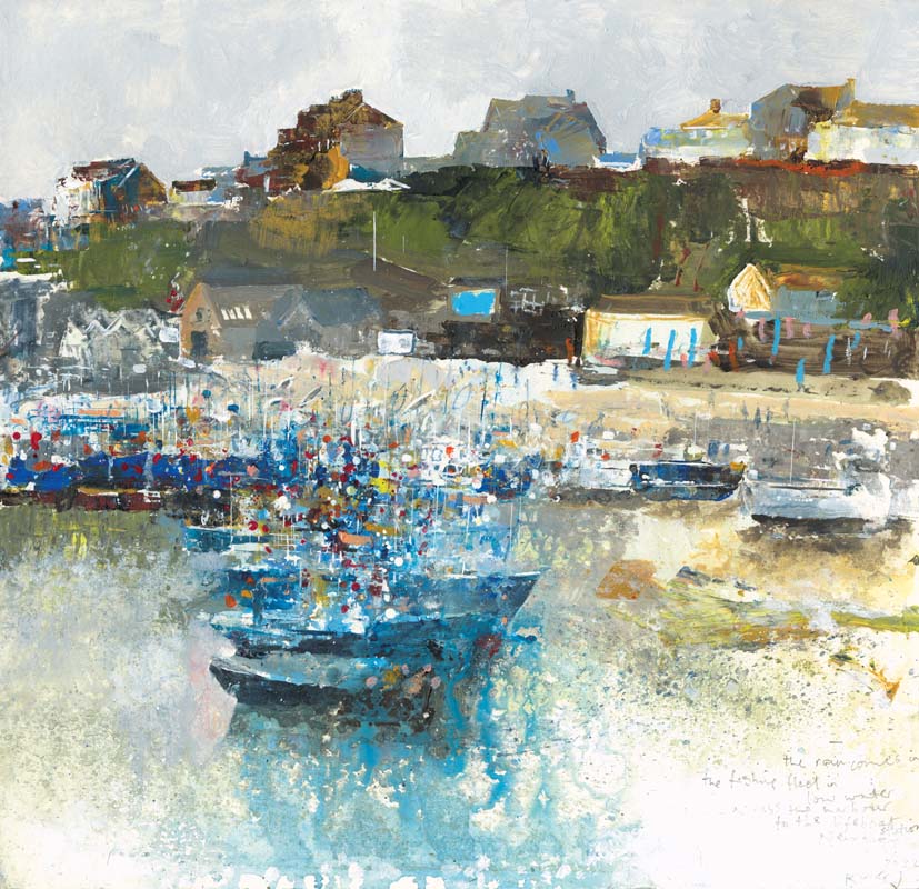 Newlyn. 2021. <br> <strong> mixed media on museum board. <br> 22 x 22cm. <br> JF1603 <br> <br> £3,500 </strong>