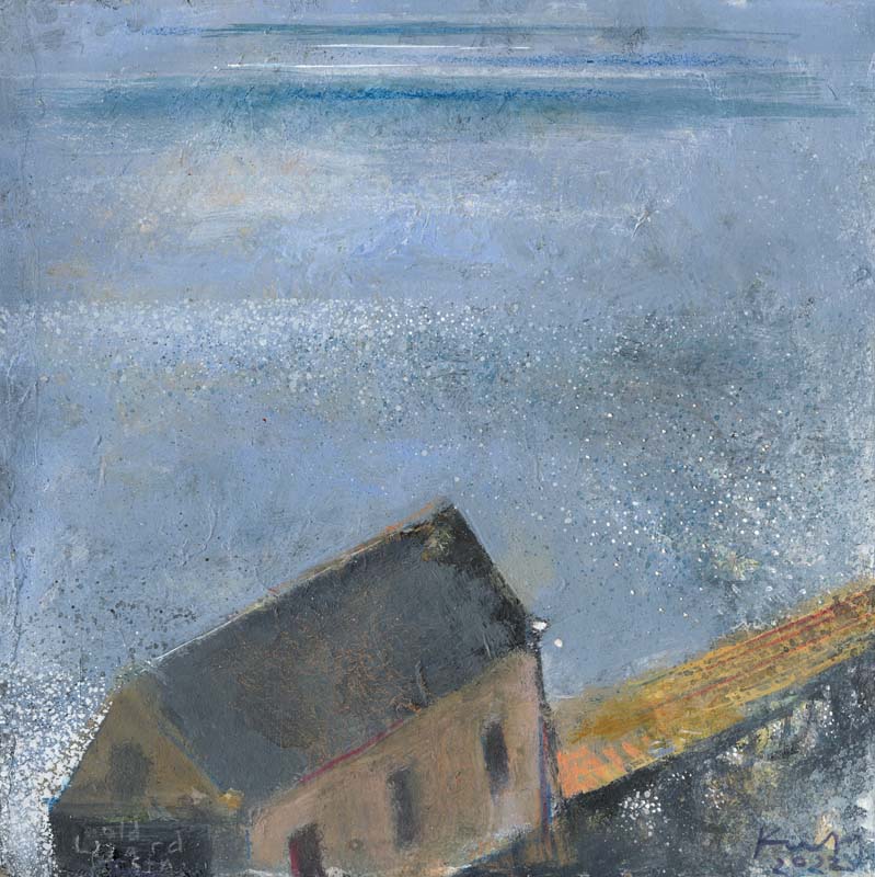 The lifeguards’ hut, Sennen. 2022. <br> <strong> mixed media on canvas board. <br> 60 x 60cm. <br> JF1560 <br> <br> SOLD </strong>